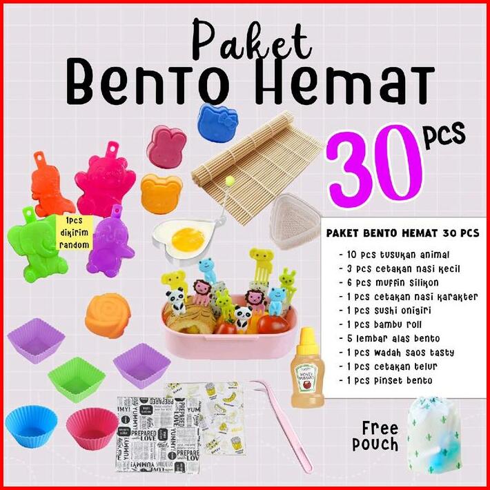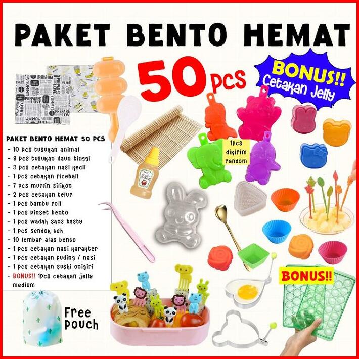 Paket Perlengkapan Bento Anak Isi 50 Dan Isi 30 Set Komplit Bekal Anak Sekolah Cetakan Nasi Bento Bulat Karakter Murah H