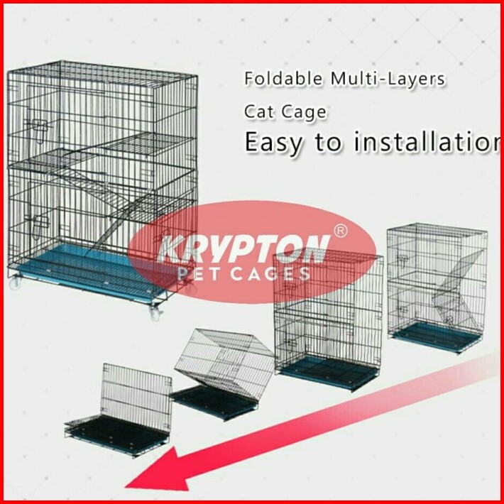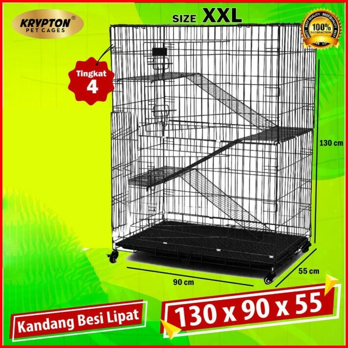 Kandang Kucing Tingkat 3 Extra Jumbo 130x90x55 Roda
