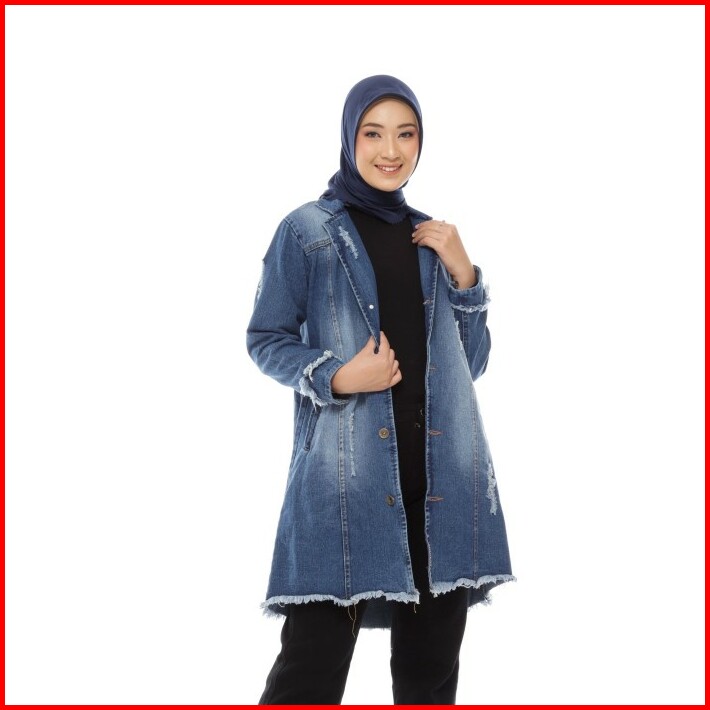 Jaket Jacket Jeans Denim Wanita Blezer Outer Outwear Panjang Cewek