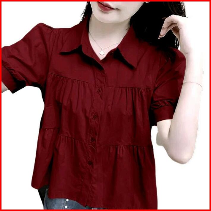 Atasan Kemeja Wanita Dewasa Terbaru Dan Kekinian Atasan Wanita Korea Lengan Pendek Blus Wanita Dewasa Terbaru Lengan Pen