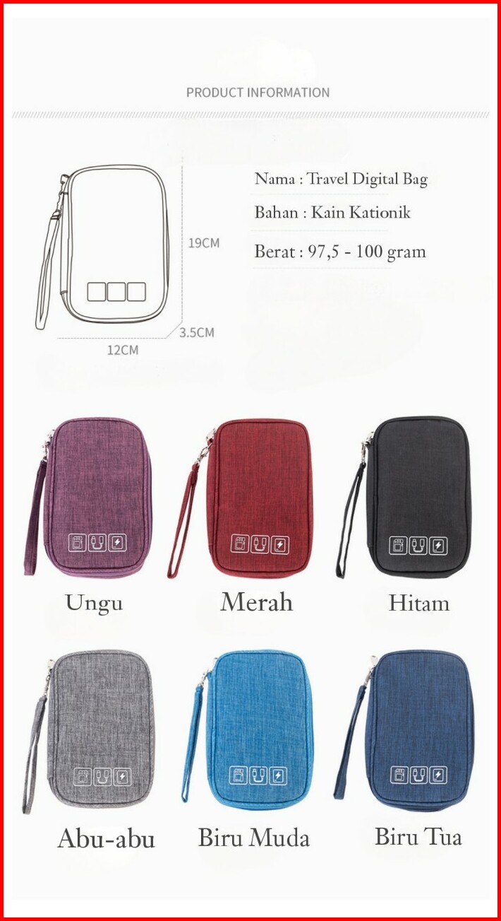 Tas Kabel Charger Usb Travel Pouch Organizer Cable Bag Dompet Gadget