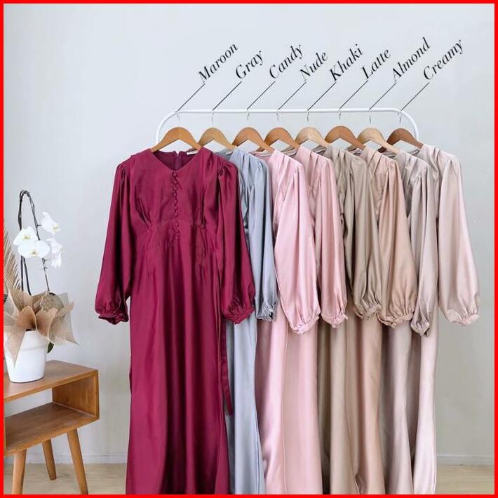 Alzena Dress Panjang Muslim Wanita Satin Xs-xxl Nadiraa Hijab Gamis Dewasa Maxi Remaja Simple