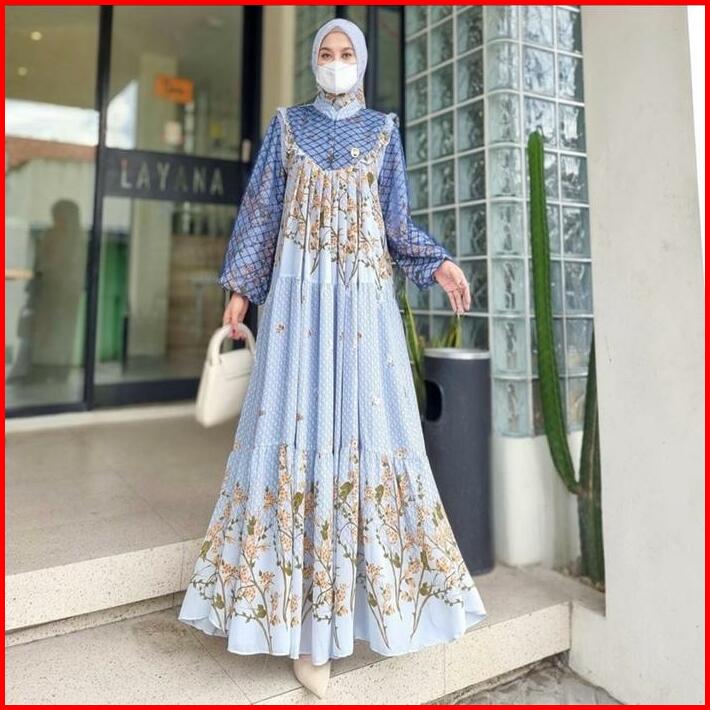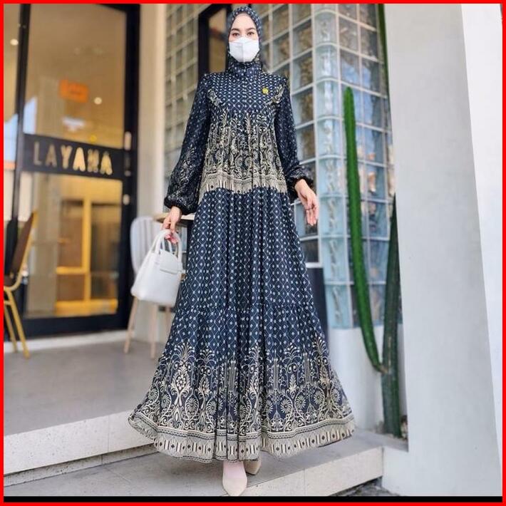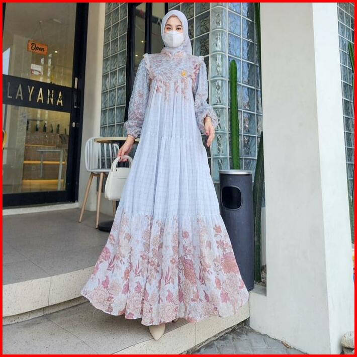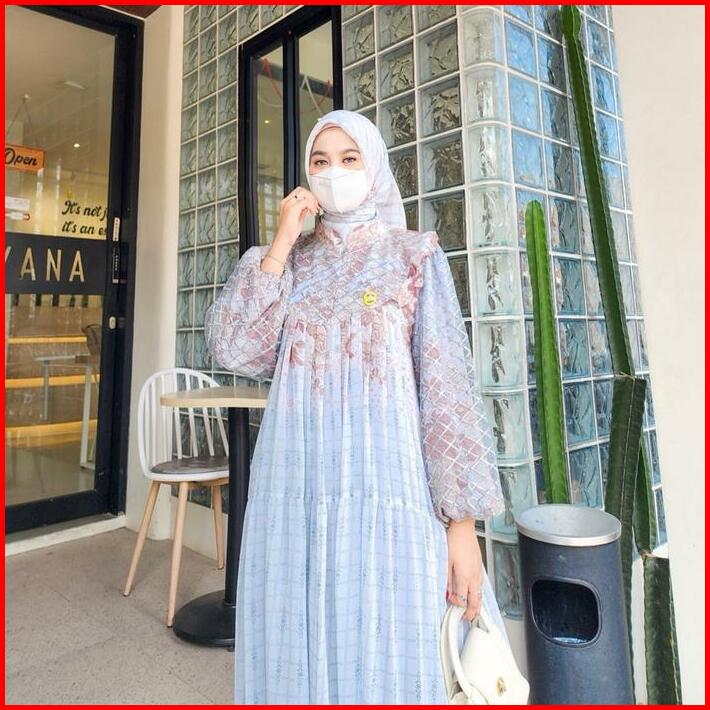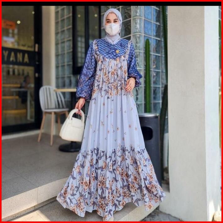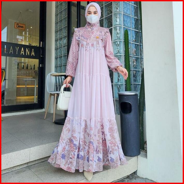 Amora Dress Mewah Ceruty Set Hijab Kombinasi Tille Premium Gamis Muslim Wanita Busui By Otty Lux
