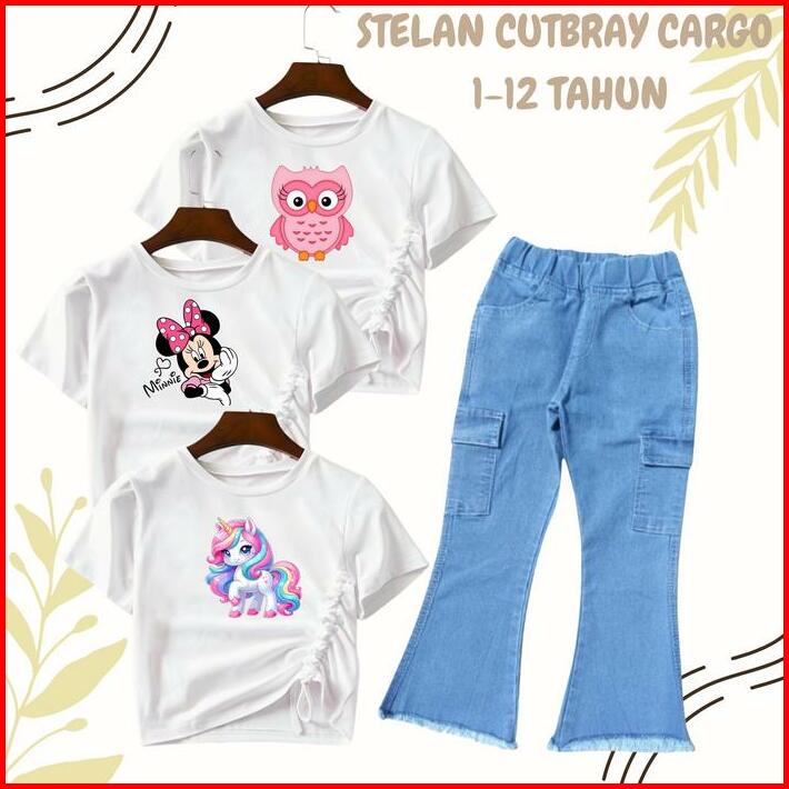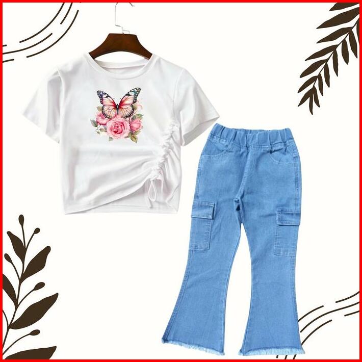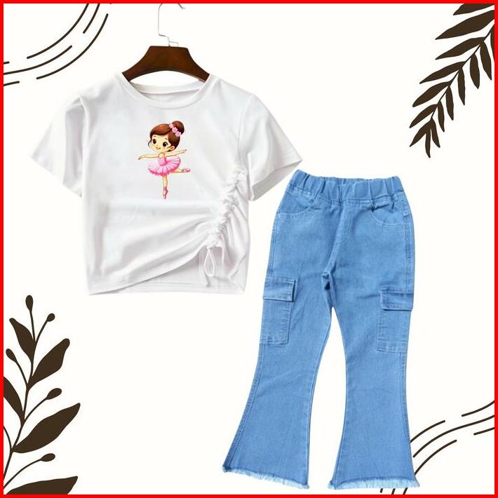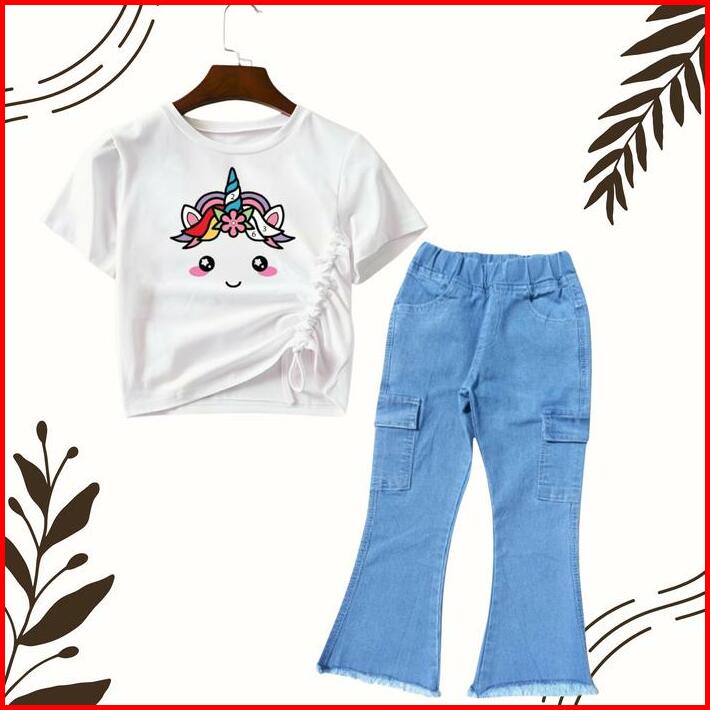 Setelan Celana Jeans Cutbray Anak Perempuan 1-12 Tahun