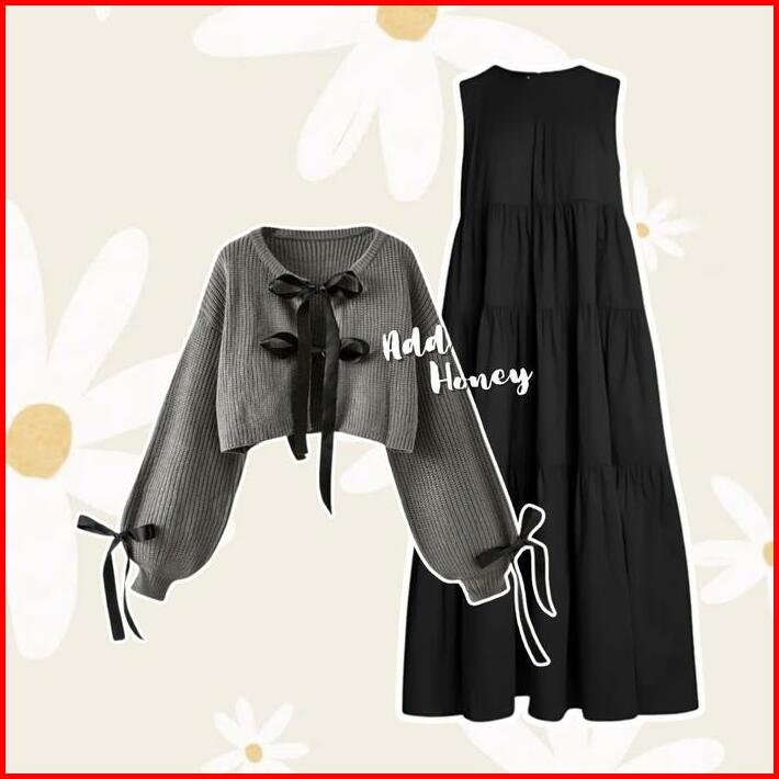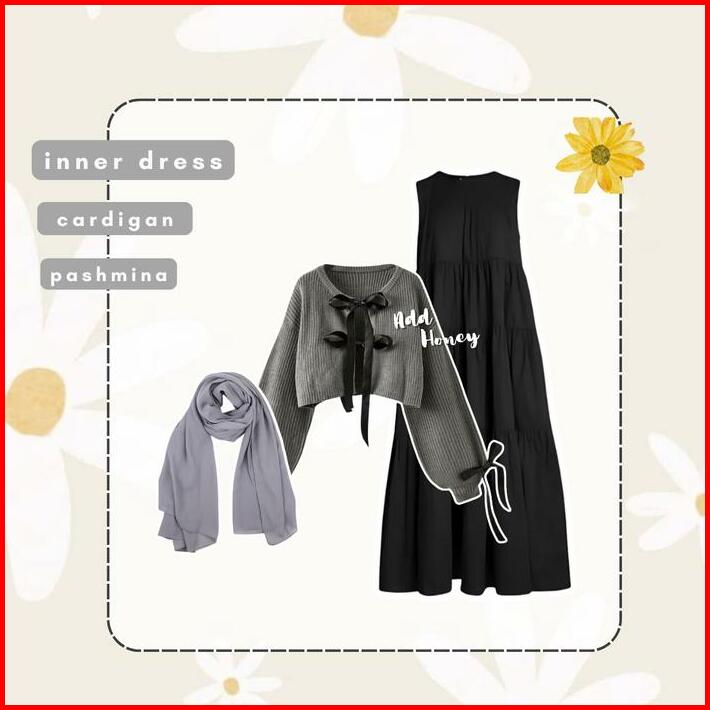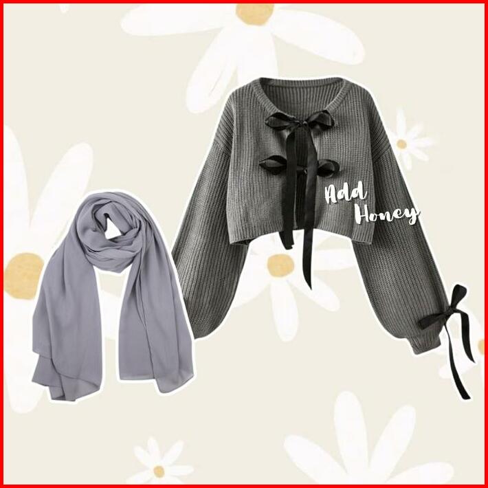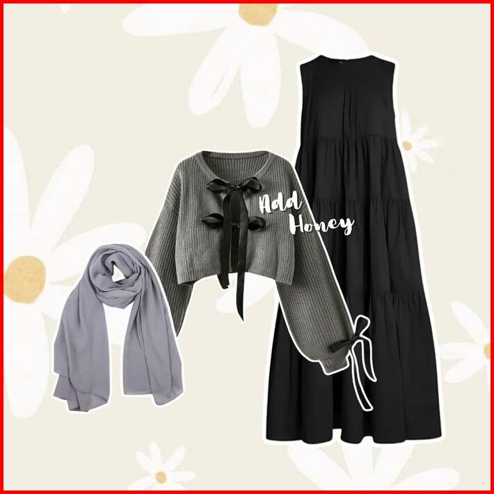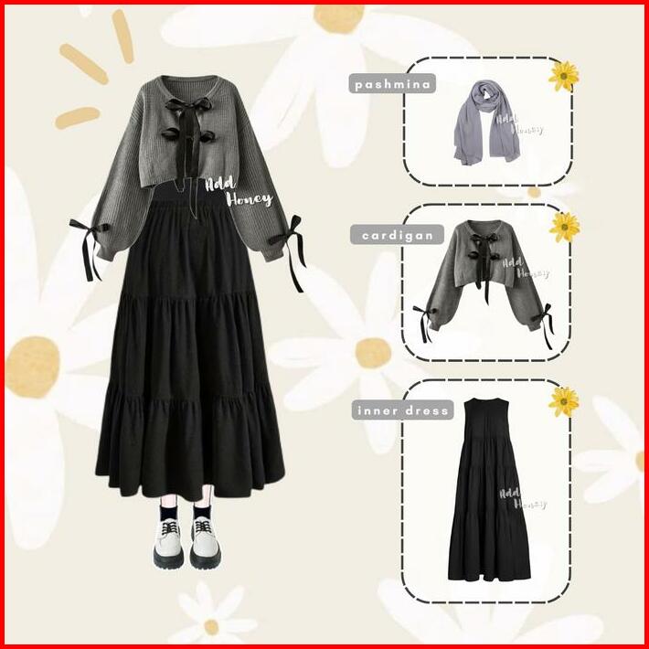 One Set Wanita Korean Style Hijab Cardigan Pita Korea Dress Ruffle Setelan Kekinian Terbaru Ah130 Muslim Remaja Dewasa T