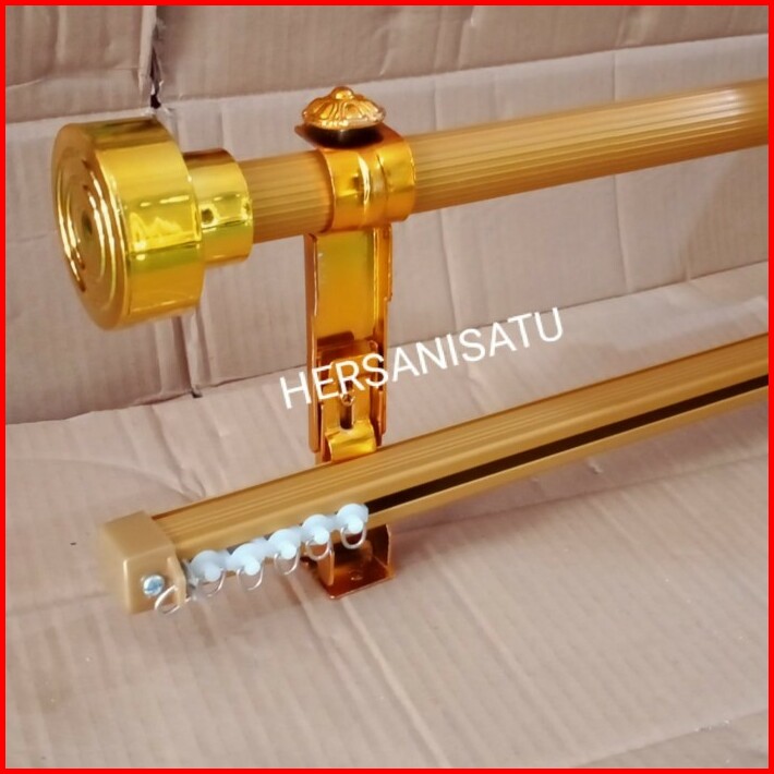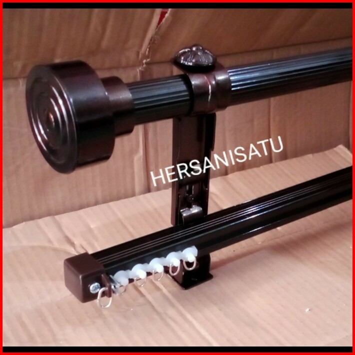 2 3meter Besi Gorden Double Fullset Batang Hordeng Ganda Rel Vitrase