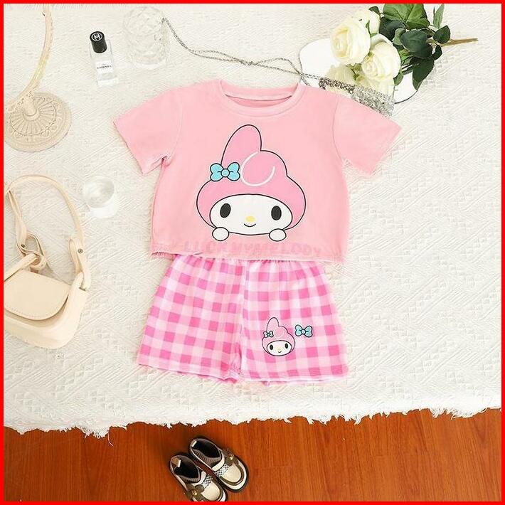 Boogiebaby168 Setelan Anak Perempuan Motif Melody Cinnamoroll Kitty Kuromi Bahan Katun Usia 1-9 Tahun Bayi