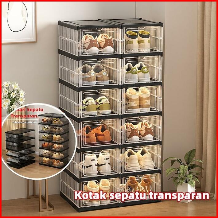 Tidak Perlu Instalasi Lebih Tebal Dan Kuat Kotak Sepatu Ukuran Ekstra Besar Shoe Storage Boxes Susun Plastik Lemari Sepa