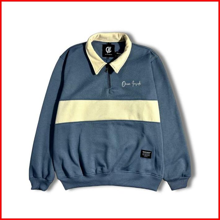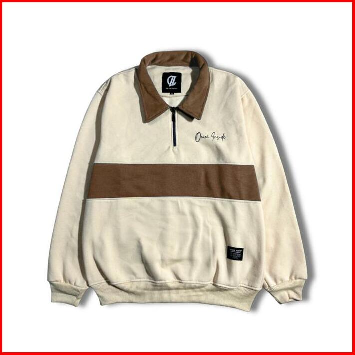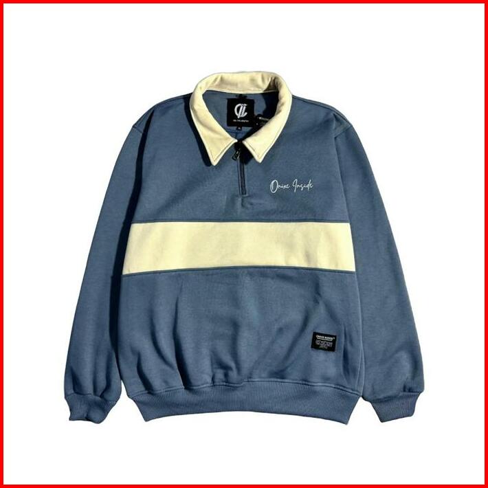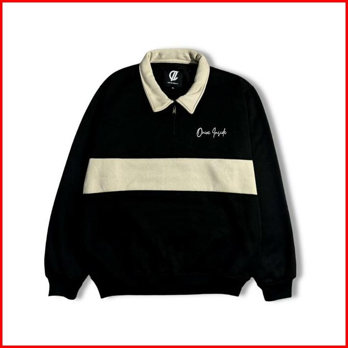Jaket Rugby Half Zip Unisex Casual Sweater Kombinasi Pria Wanita Fleece Keren Crewneck Panjang Stiker Tebal Distro Cowok