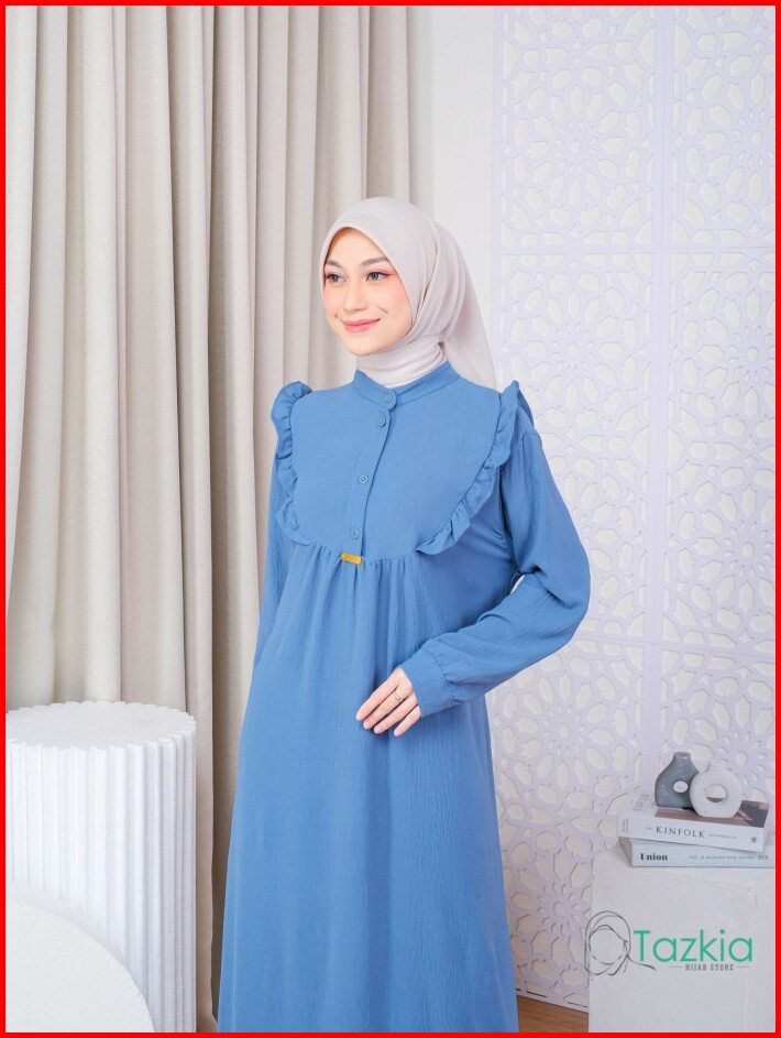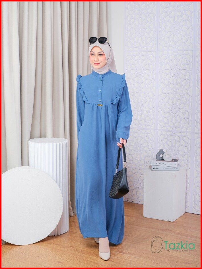 Dress Muslim Wanita Gamis Hana Denim Crinkle Polos Tazkia Hijab Store