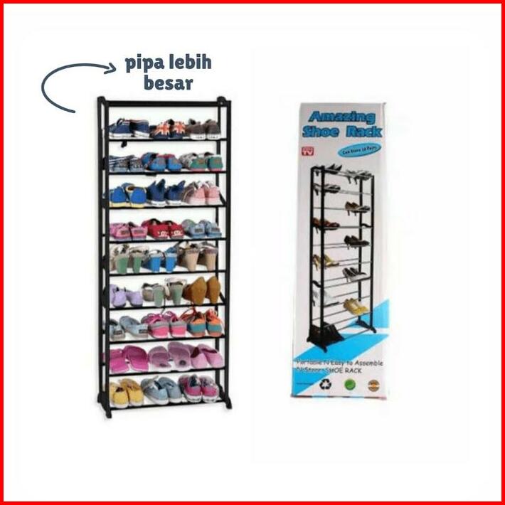 Pipa Besar Rak Amazing Shoes Non Cover 10 Susun Tempat Penyimpanan Rak Sepatu Jilbab Hijab Kerudung Selendang Shoe Rack