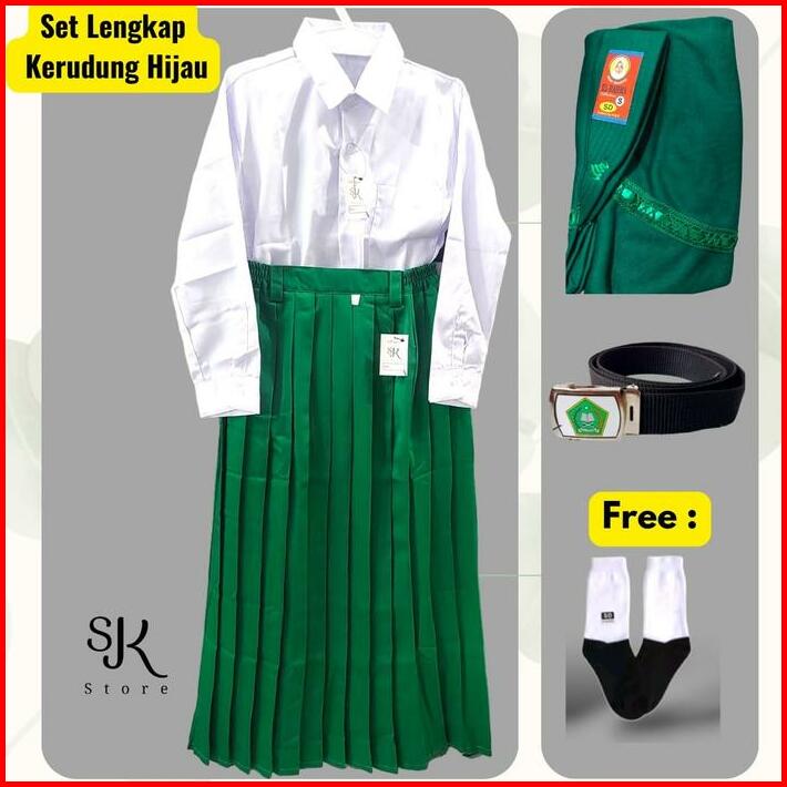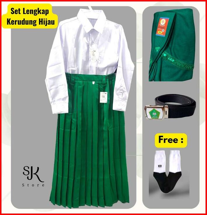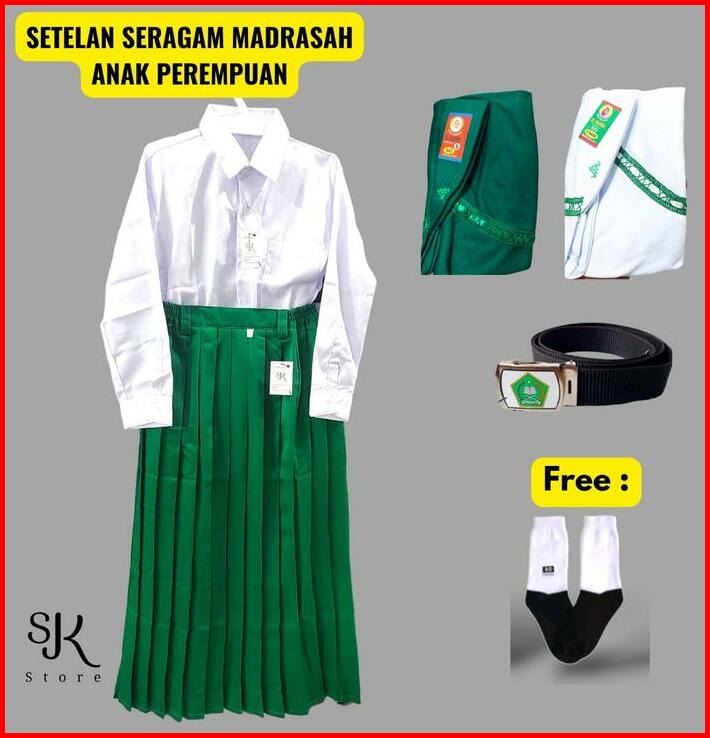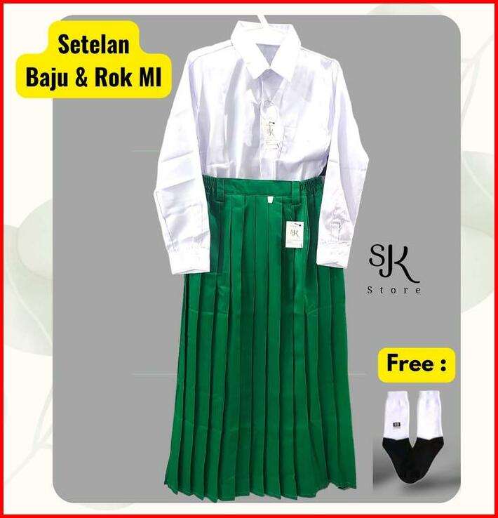 Setelan Seragam Madrasah Mi Putih Hijau Anak Perempuan Baju Dan Rok