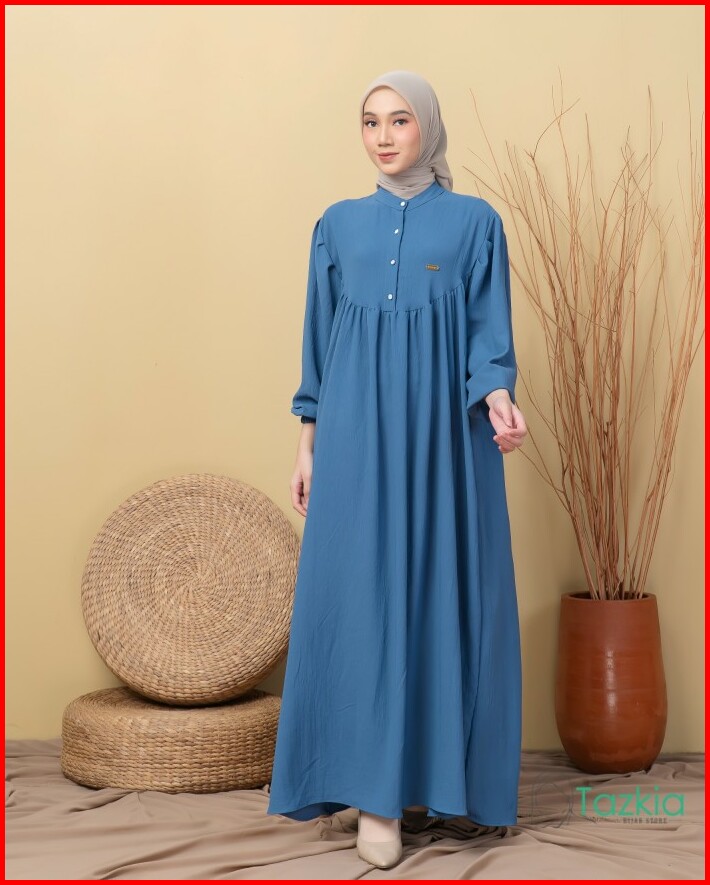 Dress Muslim Wanita Amelia Denim Gamis Polos Crinkle Tazkia Hijab