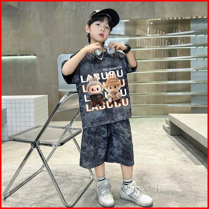 Majin Setelan Anak Stone Wash Set Distro Usia 1-8 Thn Basic Anak Laki Dan Perempuan Labubu Unisex Katun