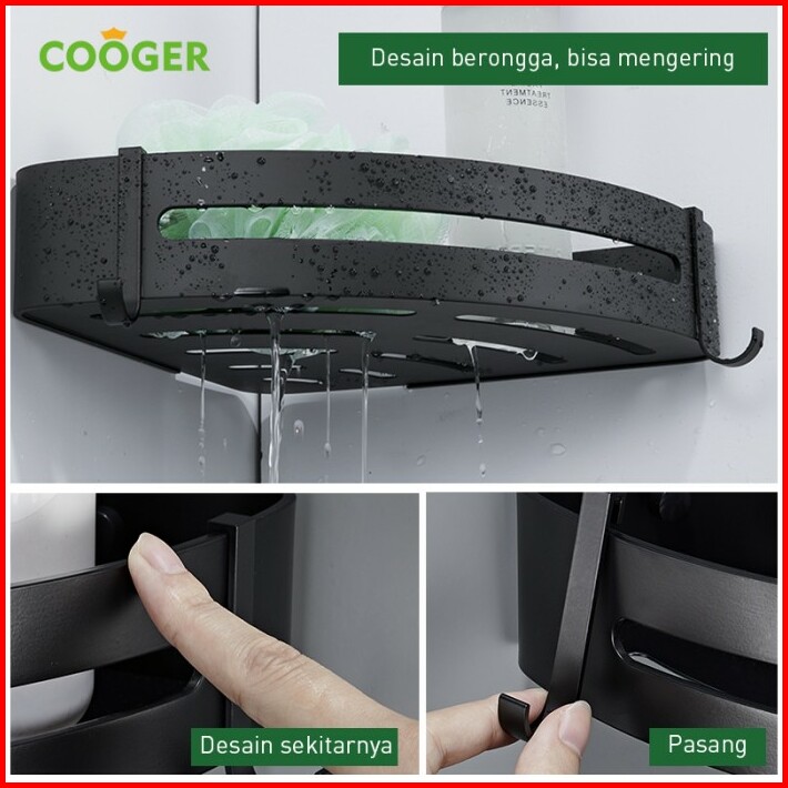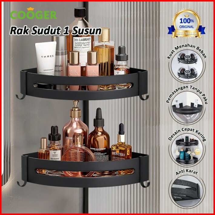Cooger Rak Kamar Mandi Sudut Alumunium Tempel Dinding Rak Serbaguna