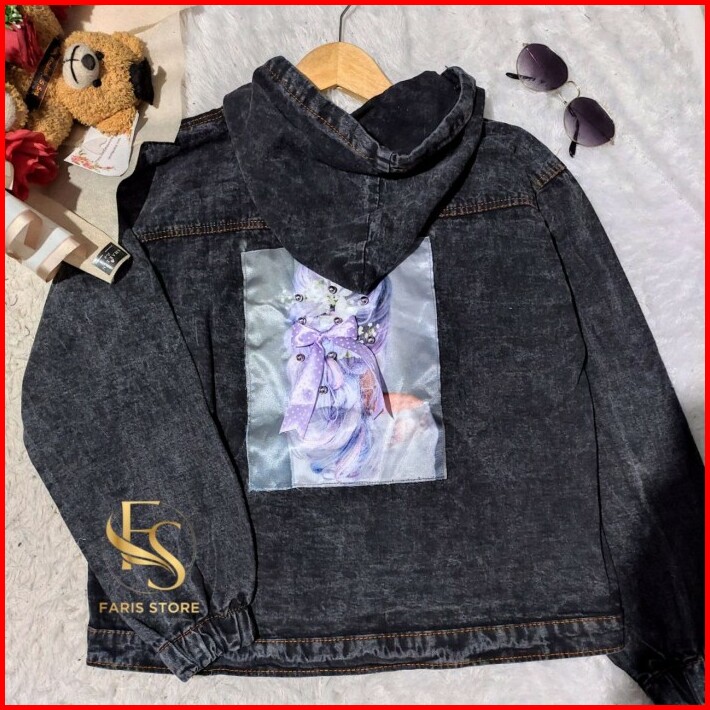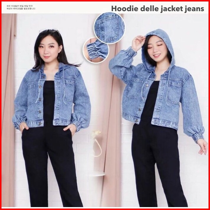 Jaket Jeans Wanita Hoodie Denim Tebal Jumbo Korean Style Terbaru