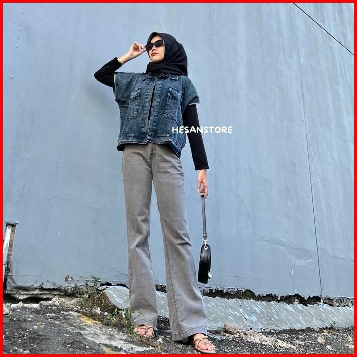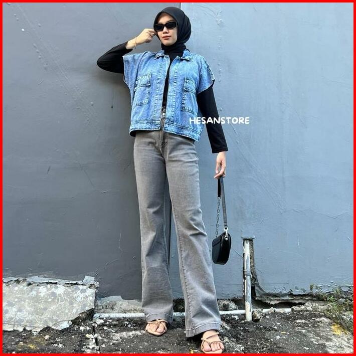 Jaket Rompi Jeans Cassandra Oversize Vest Outer Jaket Denim Wanita Panjang Tanpa Lengan Kain Lembut Dan Lentur Ld 120