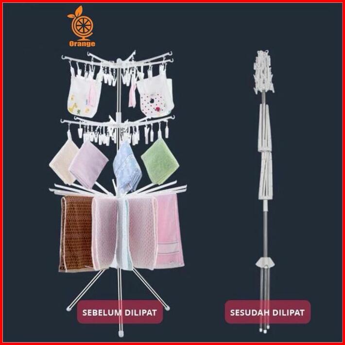Stand Hanger 3 Tingkat 16 Jari-jari Jemuran Handuk Menara Stand Hanger Kaos Kaki Rak Gantung Jemuran Berdiri Mjj-2