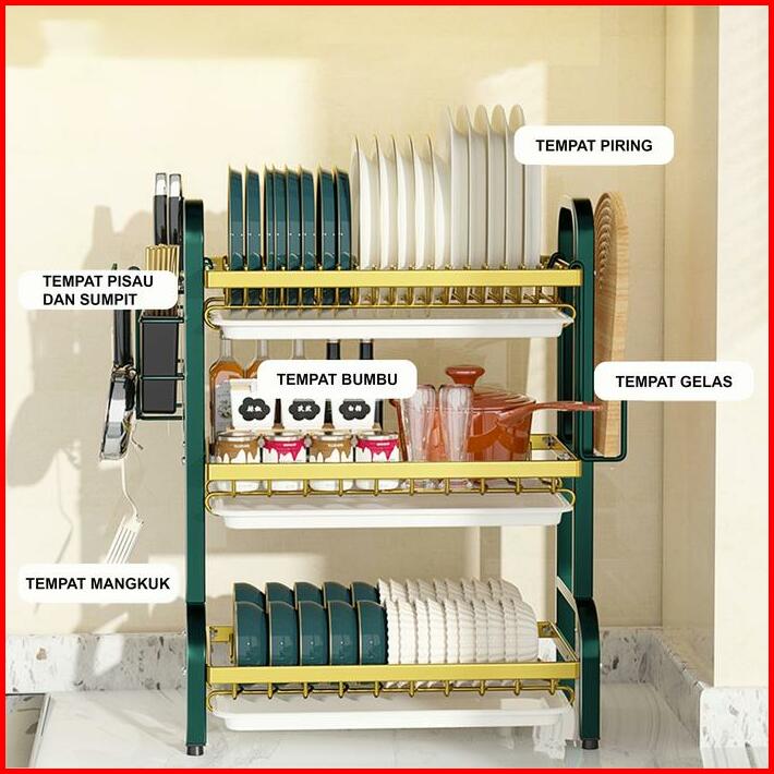 Rak Piring Stainless Rak Dapur Rak Cuci Piring 2 3 Tingkat Anti Karat Rak Piring Stainless Rak Wastafel Peralatan Dapur