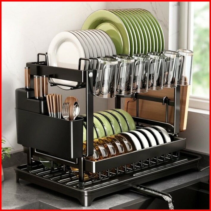 Rak Piring Rak Cuci Piring Penyimpanan Dapur Stainless Steel Dish Rack