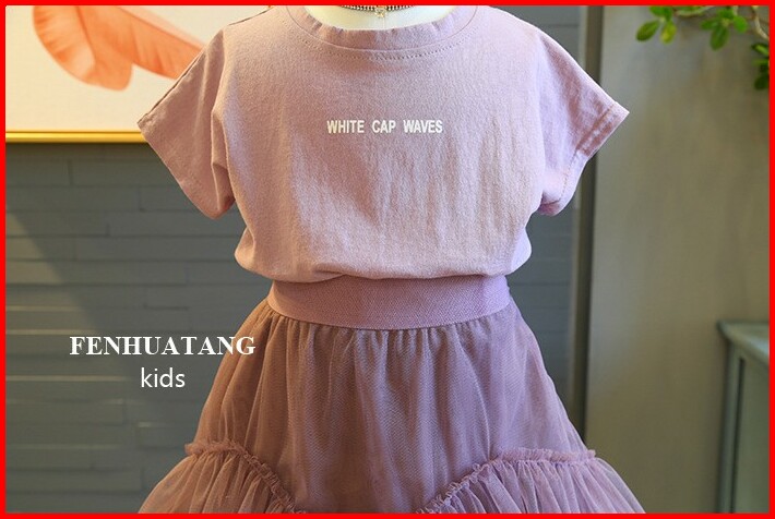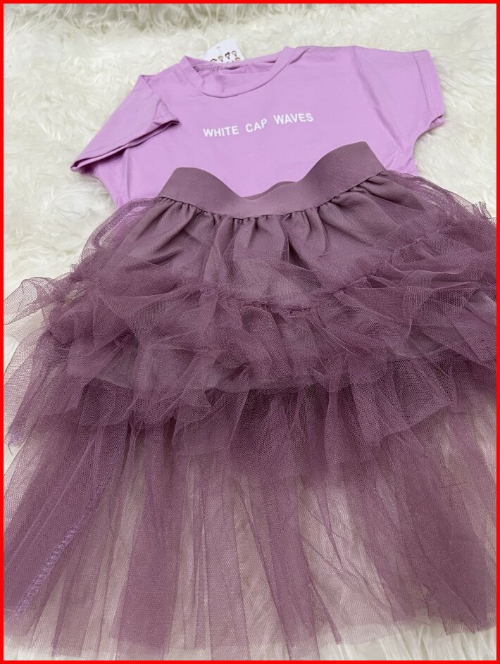 Setelan Anak Perempuan Import Kaos Dan Rok Tulle Ungu Gina Set