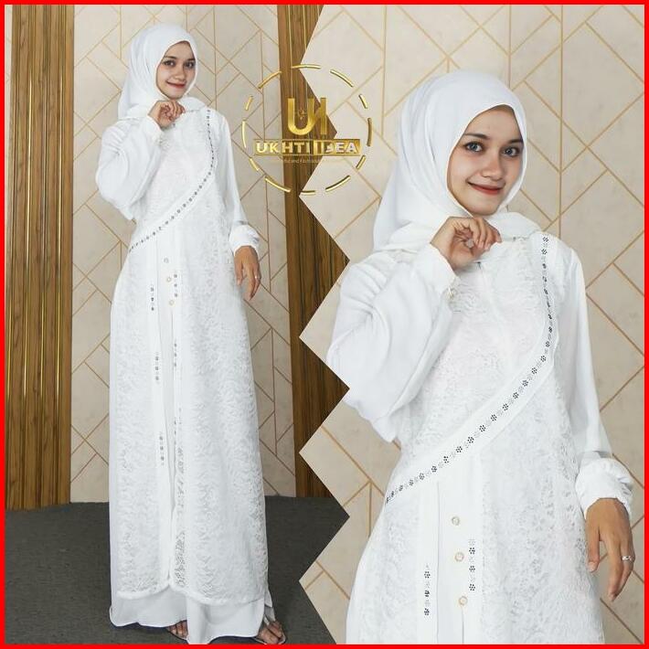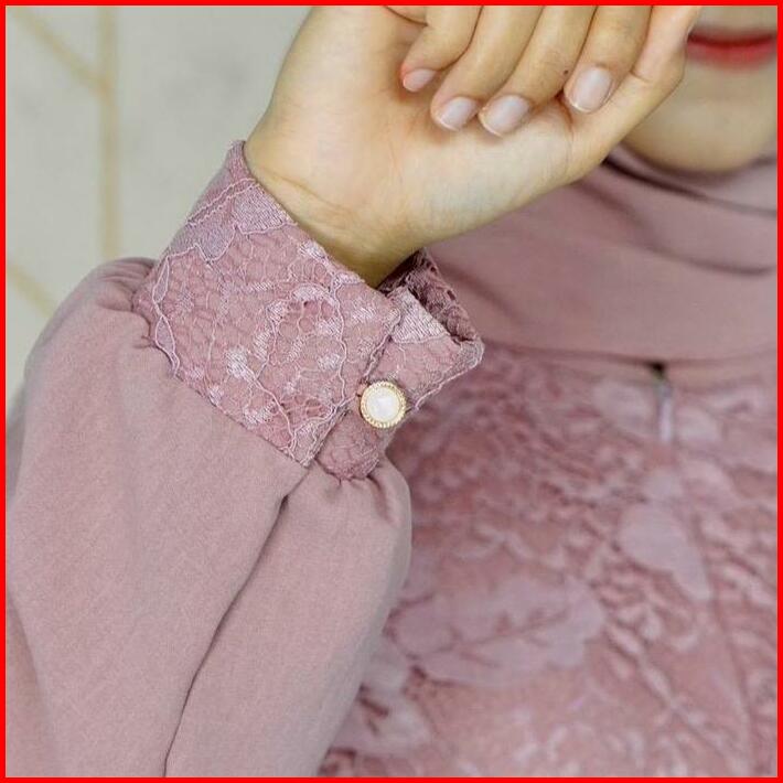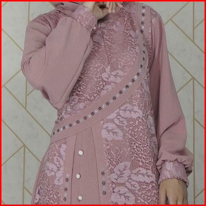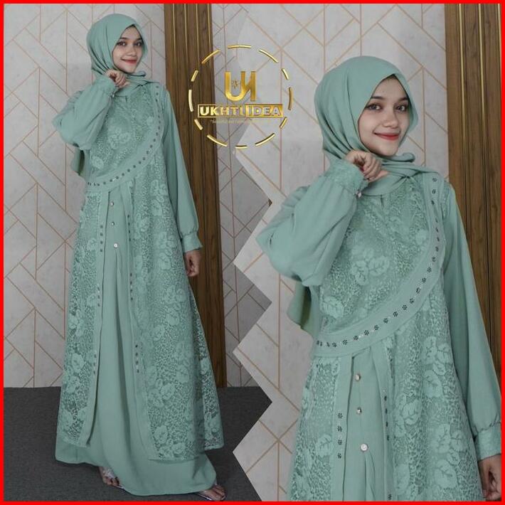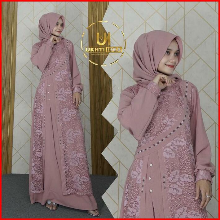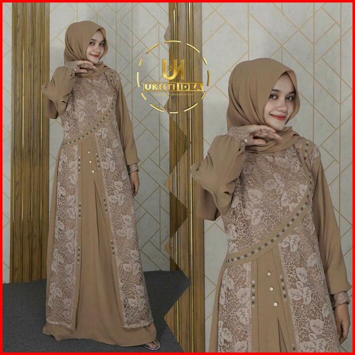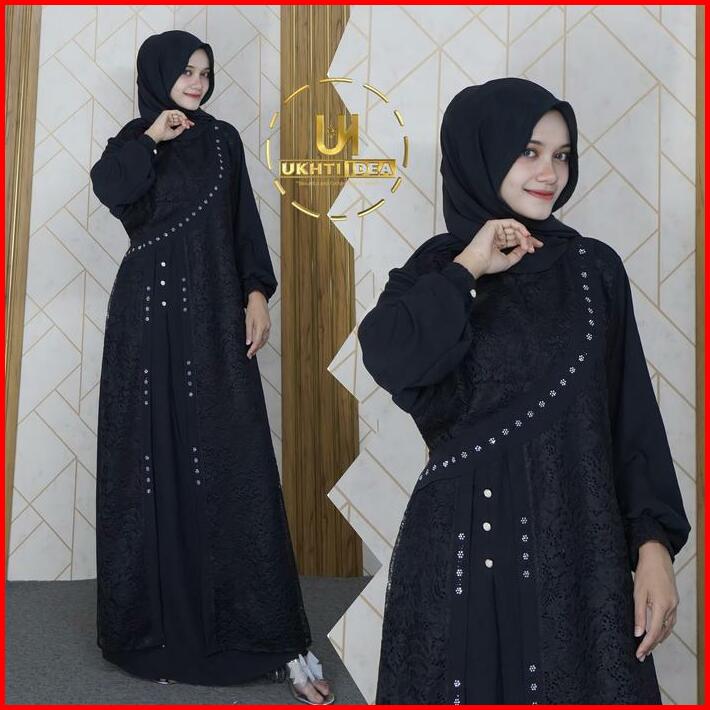 Free Hijab Zulfa Dress Gamis Crinkle Airflow Mix Brokat Mote Wanita Muslim Lebaran 2025 Syari Mewah Terbaru 2024 Kondang