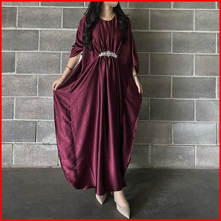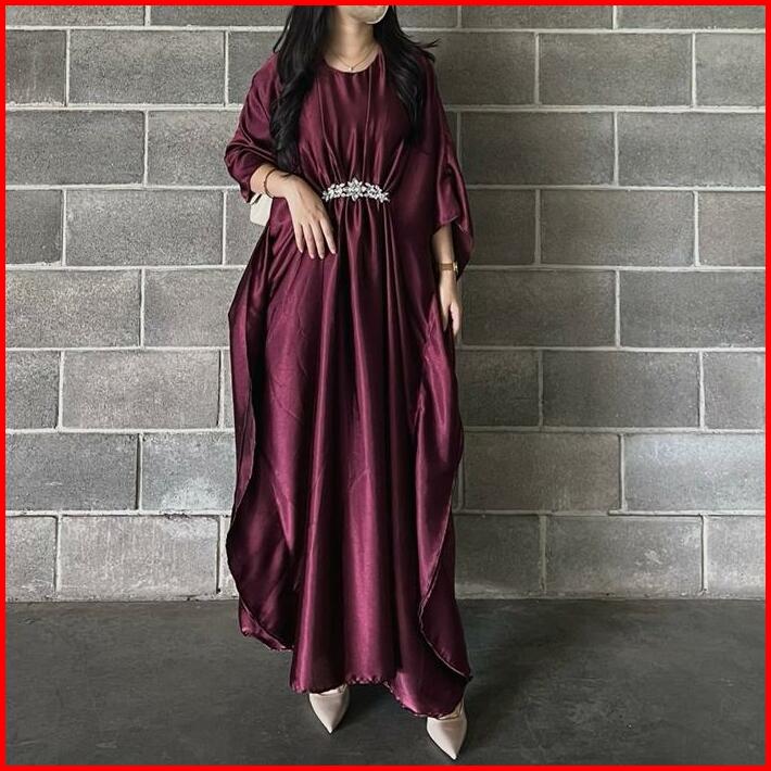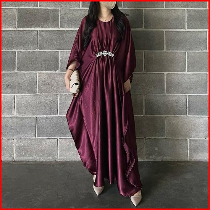 Silk Dress Payet Kaftan Burgundy Baju Lebaran Wanita Dress Muslim Raya Dress Hijab Kondangan