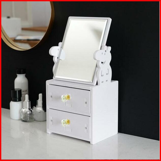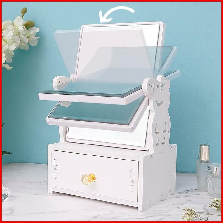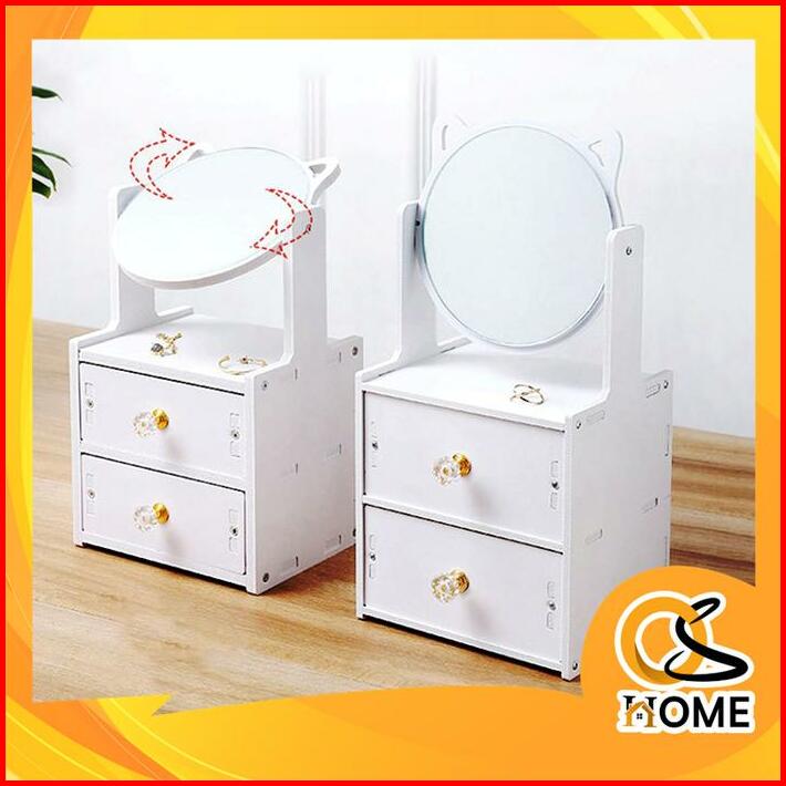 H5579 Rak Rias 2 Susun Dengan Cermin Rak Kosmetik Tempat Make Up Rak Cermin Make Up 2 Susun Rak Laci Cermin Kayu Putih