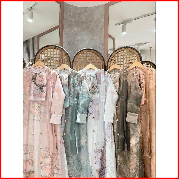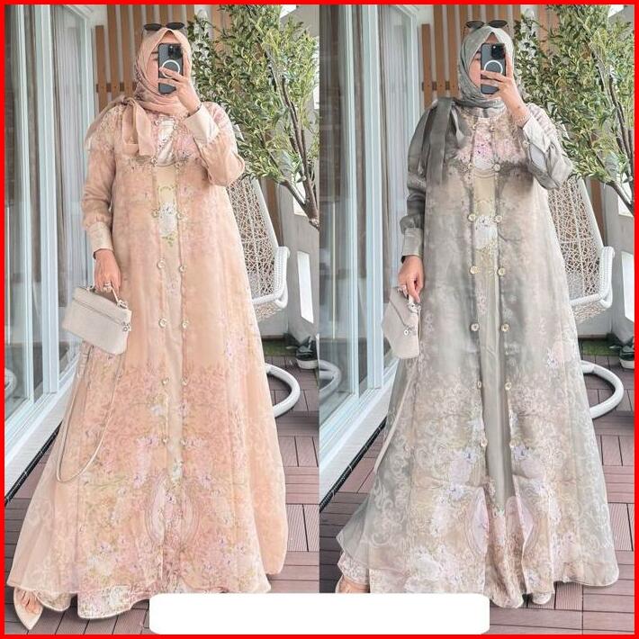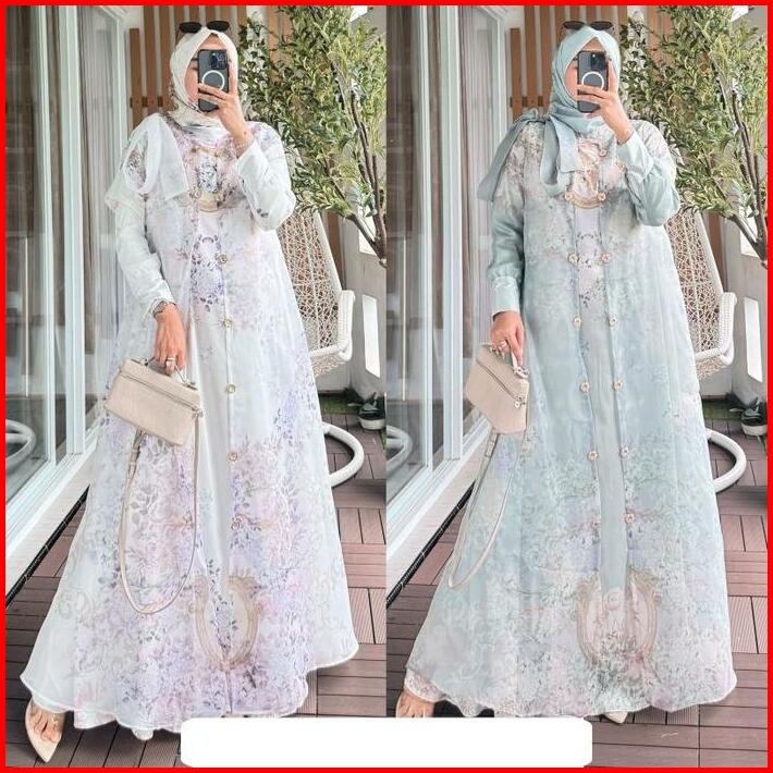 Pesona Omg Gamis Sultan Set Hijab Bahan Ceruty Premium Import Printing X Organza Motif Bunga Original Gamis Muslim Mewah
