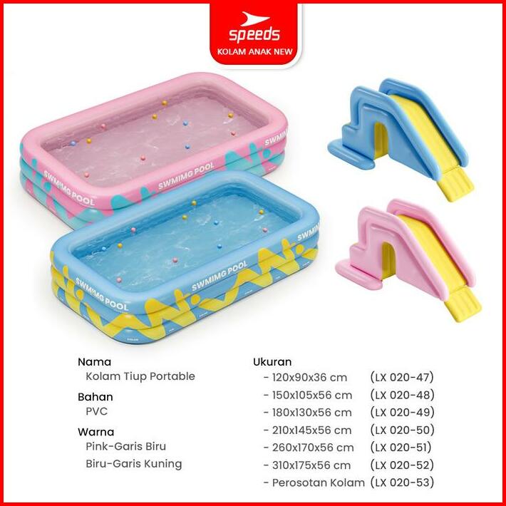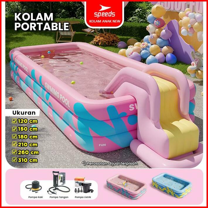 Speeds Kolam Renang Anak Tiup Ukuran 260x170x56cm Pompa Bahan Kuat Inflatable Swimming Pool Jumbo Karet 3 Ring For Kids
