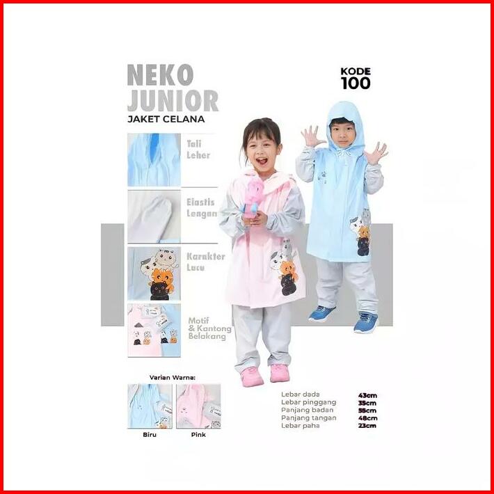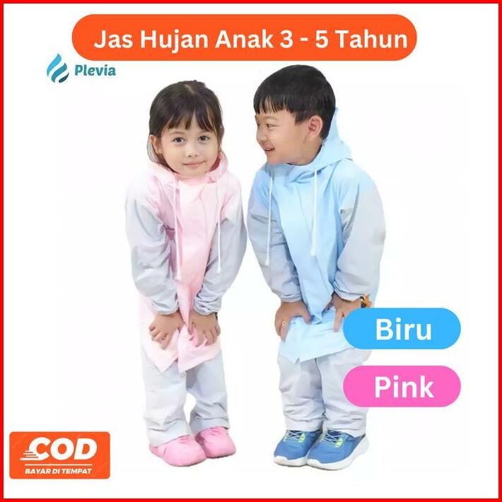 Plevia Jas Hujan Neko Umur 3-5 Tahun Setelan Jaket Celana Anak Perempuan Laki Balita Biru Pink