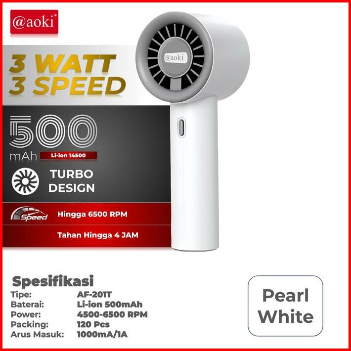 Aoki Kipas Mini Turbo Angin Kencang Hemat Daya Baterai Awet Portable 3 Kecepatan Usb Charging Baterai Tahan Lama