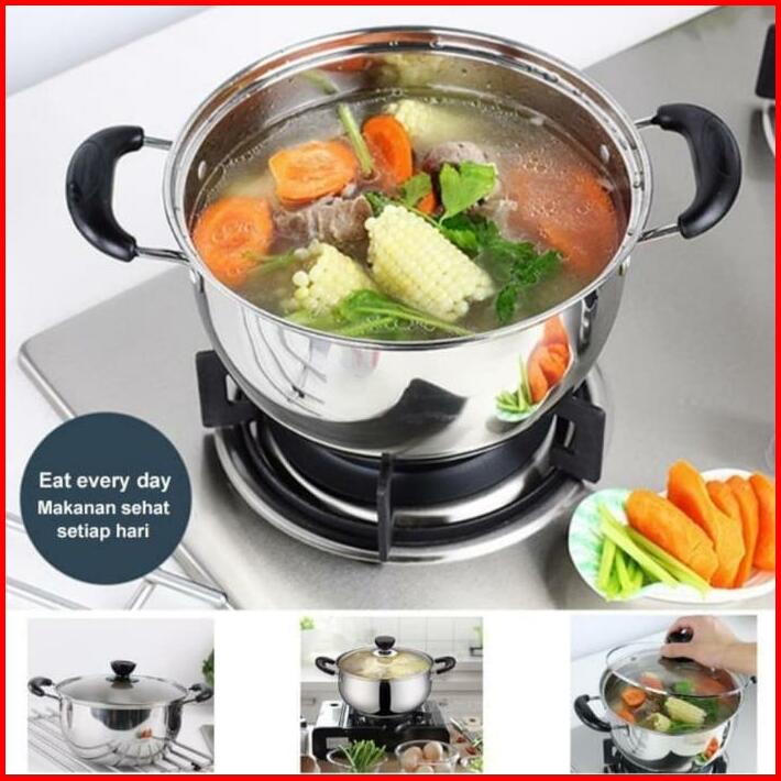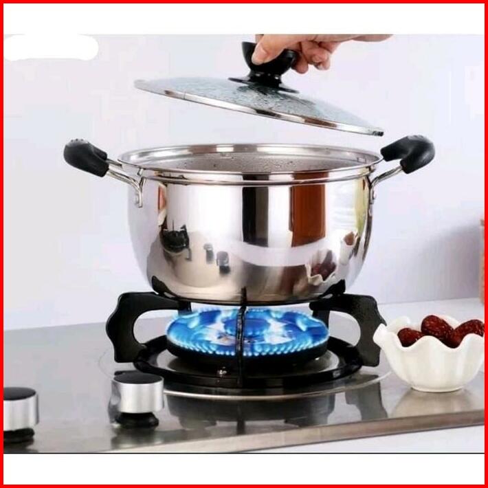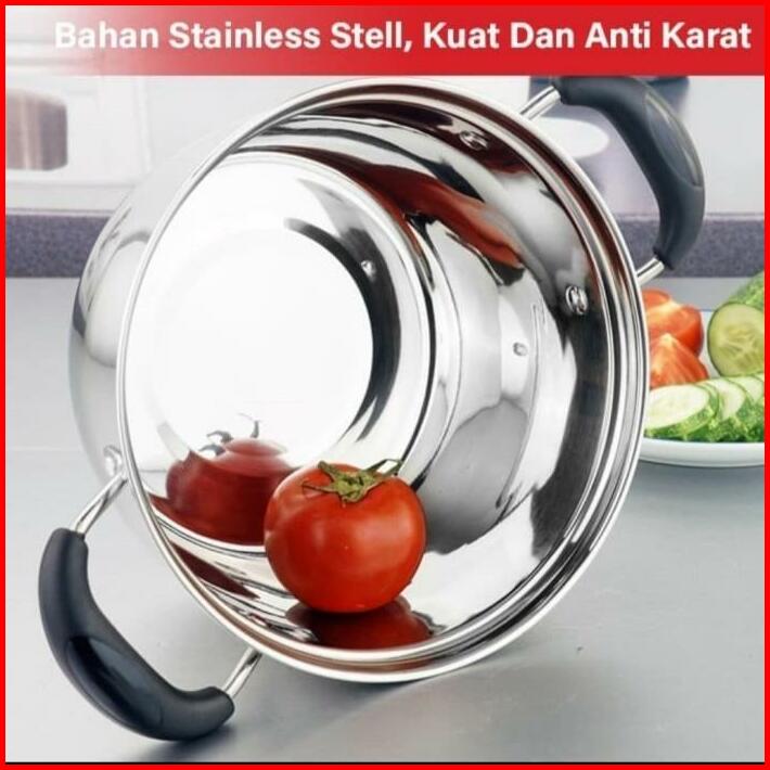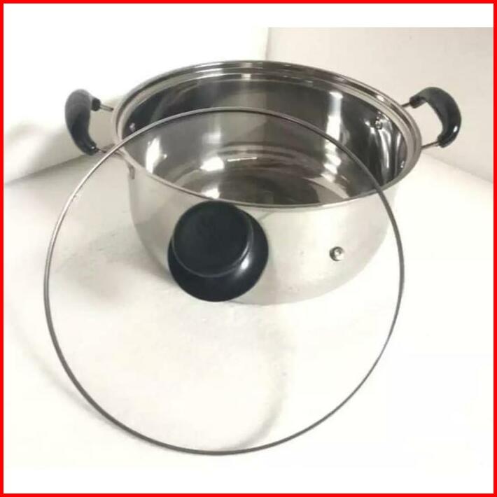 Texania Panci Kuah Sup Stainless Steel 20 Dan 22 Cm Dengan Tutup Kaca Dan Kuping Anti Panas Kitchenware