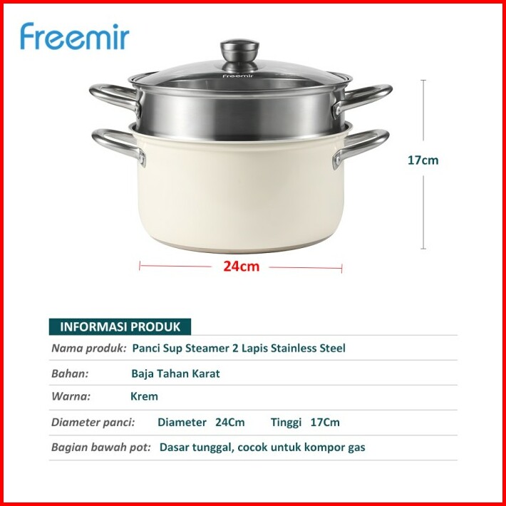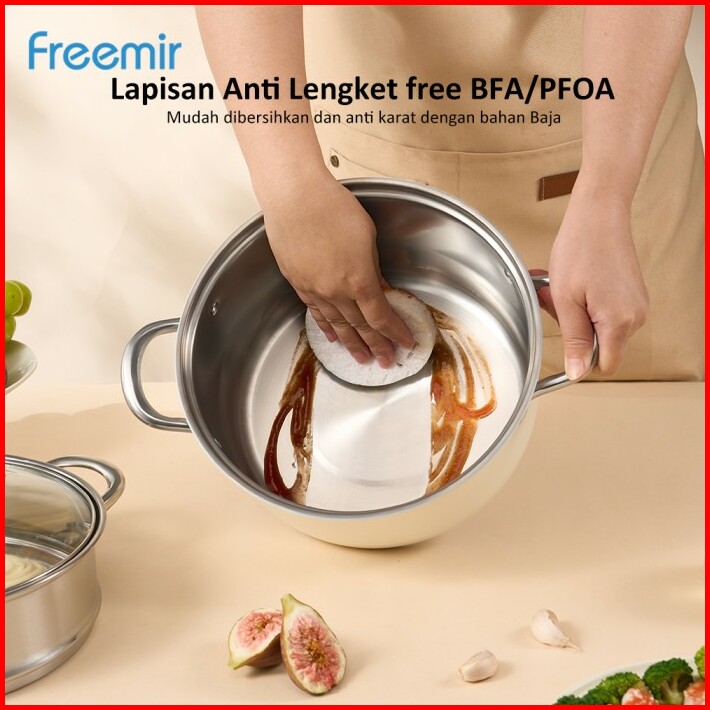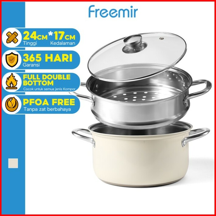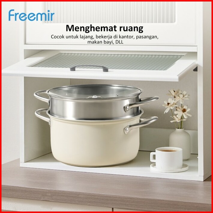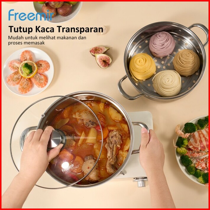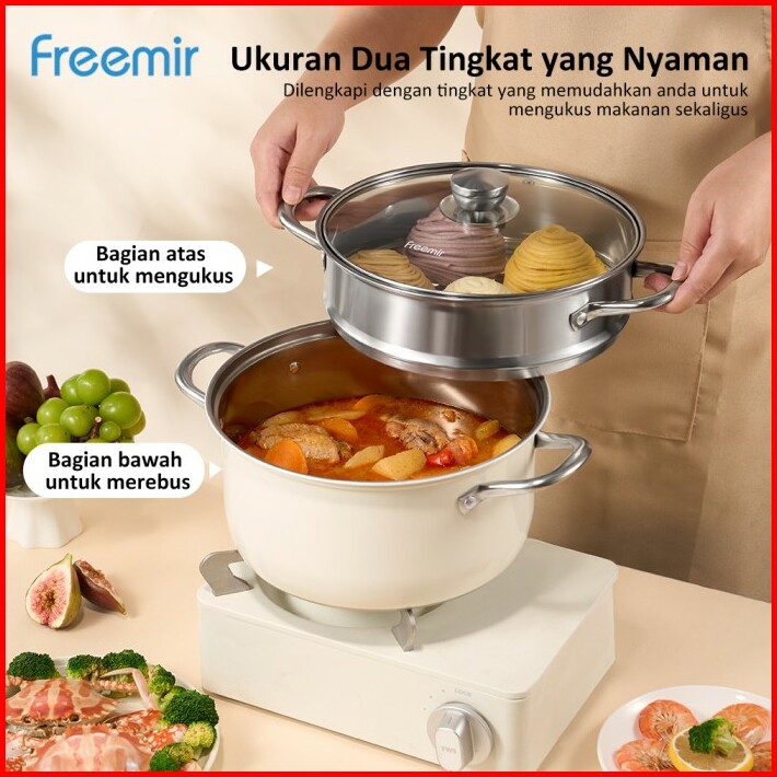 Baru Freemir Panci Kukus 2 Susun 24cm Panci Stainless Steel Panci Anti Karat Anti Lengket Multifungsi