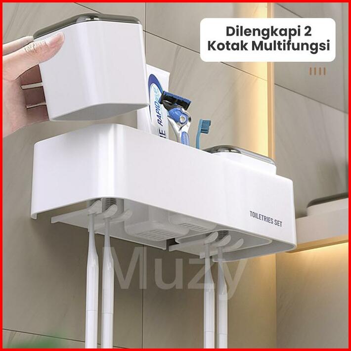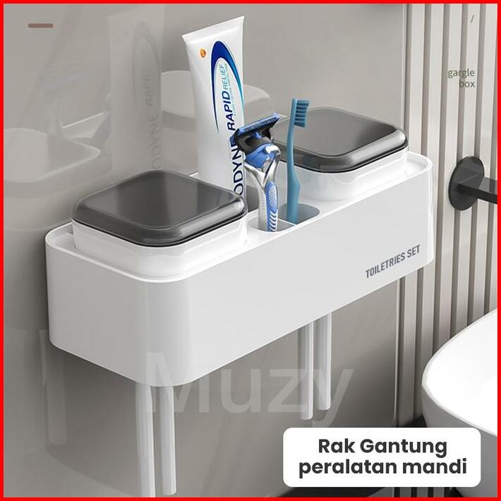 Muzy Tempat Sikat Gigi Gantung Rak Kamar Mandi Tempel Tempat Penyimpanan Organizer Skincare Multifungsi Hsb738