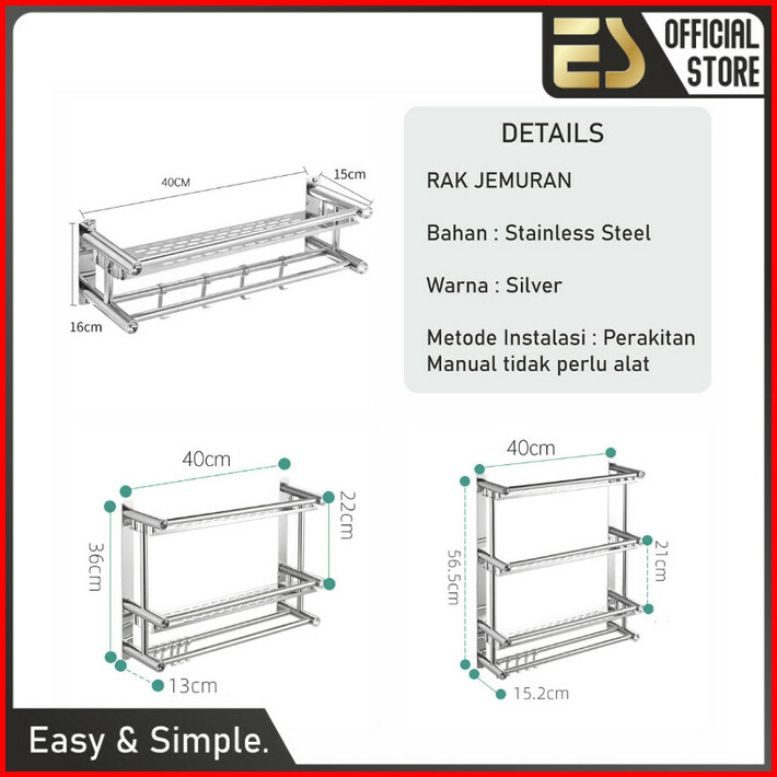 Es Rak Kamar Mandi Rak Handuk Rak Dinding Stainless Steel Rak Dapur