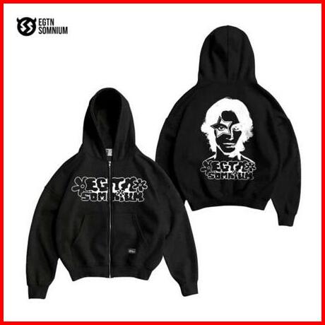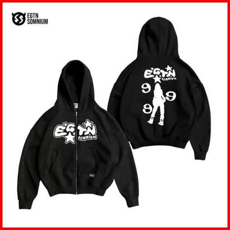 Jaket Sweater Hoodie Boxy Zipper Egtn Hitam Bintang Basic Pria Dan Wanita Premium Quality