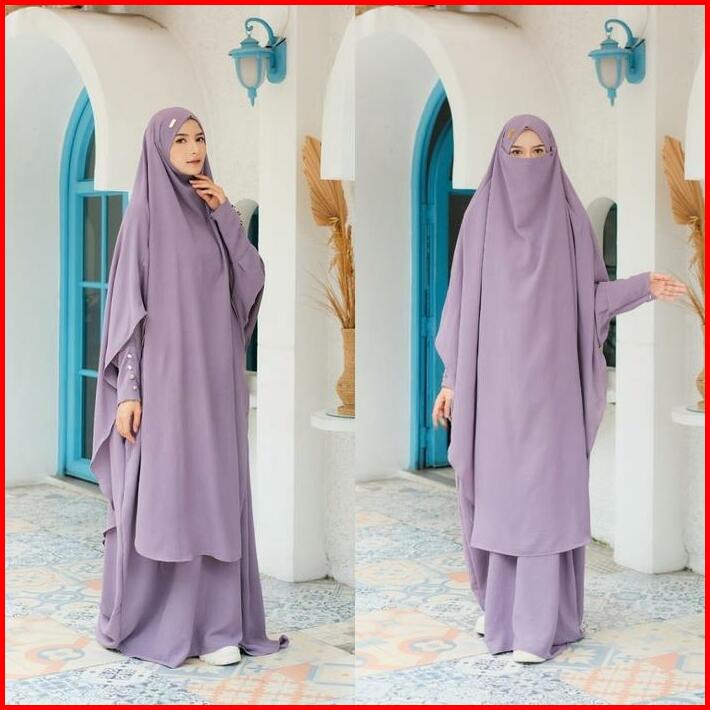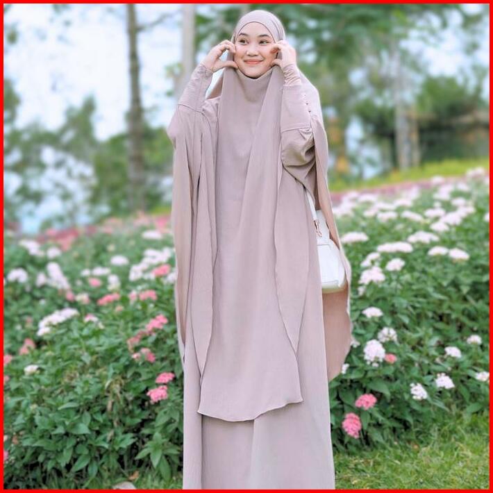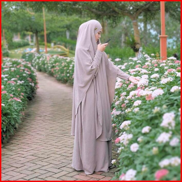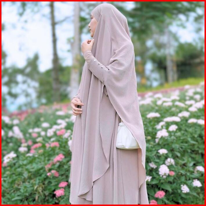 Medina One Set Syar I Umrah Haji Abaya Long French Khimar Gamis Umroh Wanita Dress Muslim Cey Ironless Airflow Lembut Ny