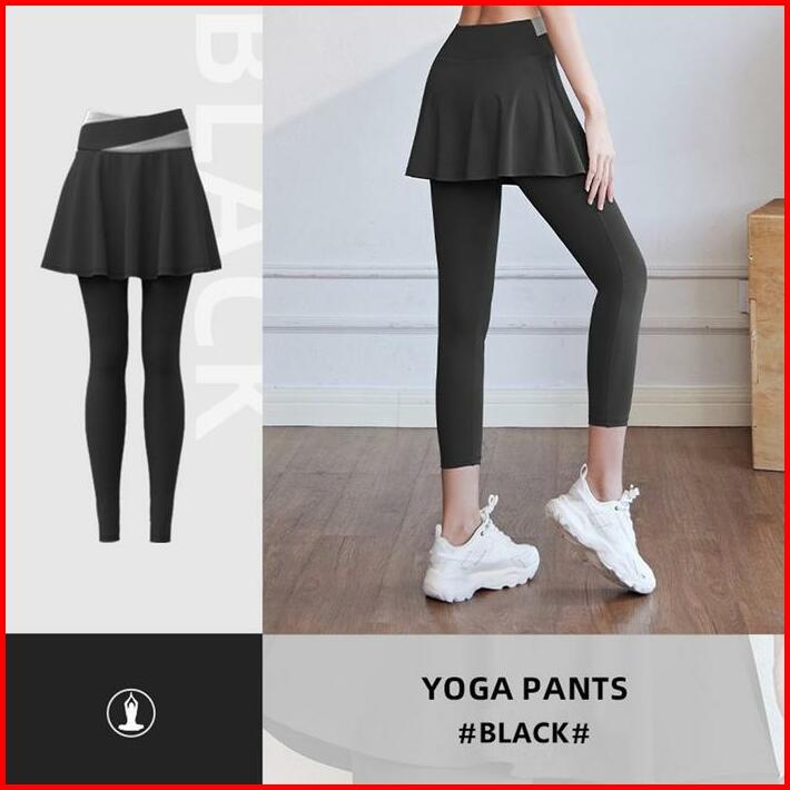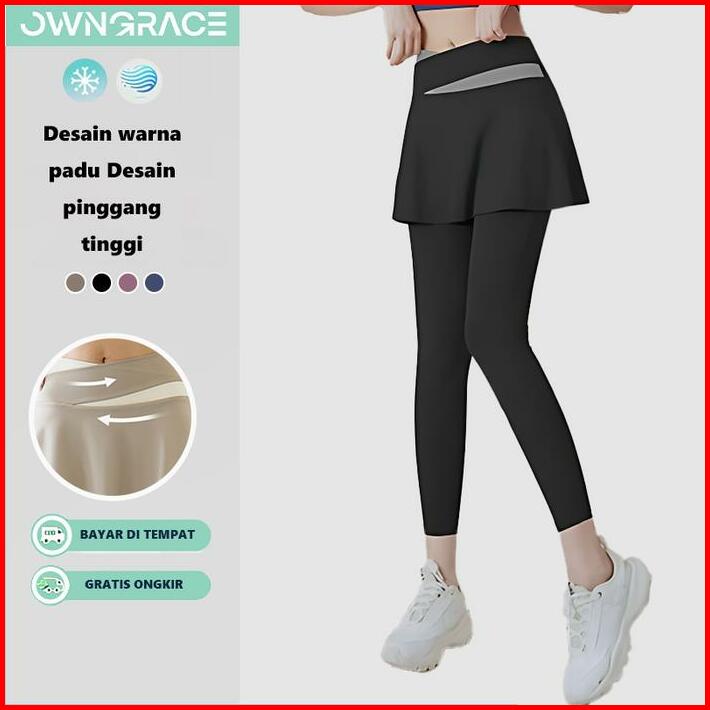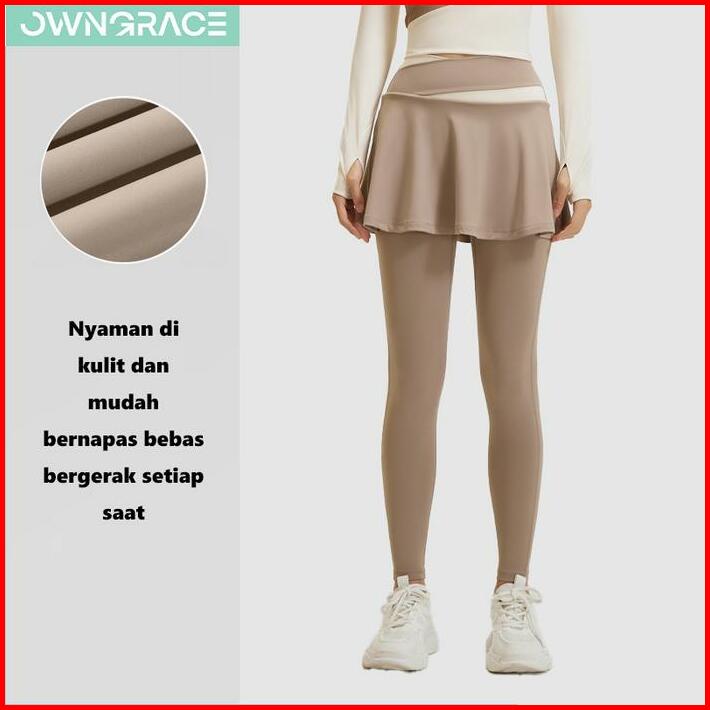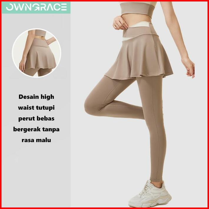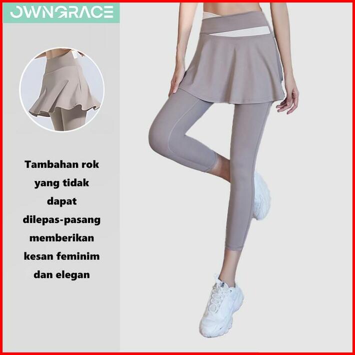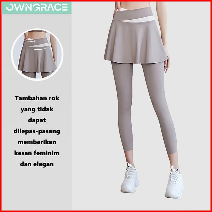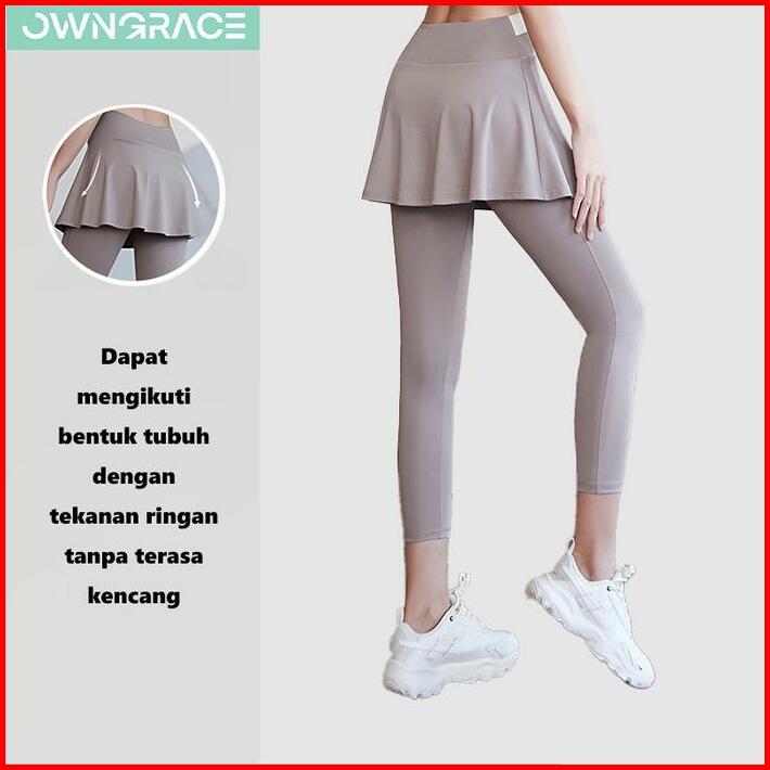 Owngrace Legging Celana Olahraga Wanita Rok Celana Skirt High Waist Polos Yoga Dua Lapis Gym Tennis Running Sport Outdoo