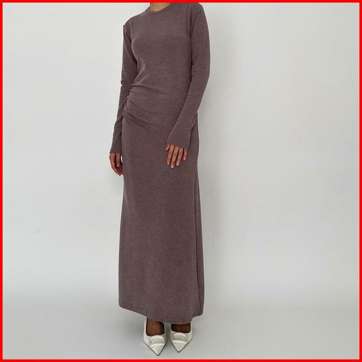 Dress Wanita Model Bodycon Press Body Midi Long Dress Basic Knit Longslevee Wanita Casual Dress Rajut Polos Dress Hitam