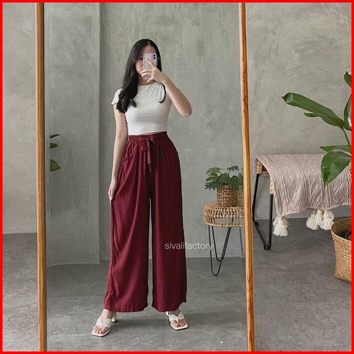 Murah Celana Kulot Rayon Kekinian Wanita Celana Kulot Highwaist Celanakulot Kulot Loose Pants Panjang