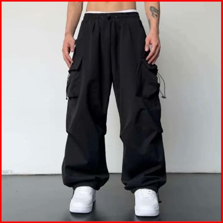 Celana Cargo Pria Model Terbaru Highwaist Korean Stail Casual Dengan Tali Serut Pinggang Karet Keren