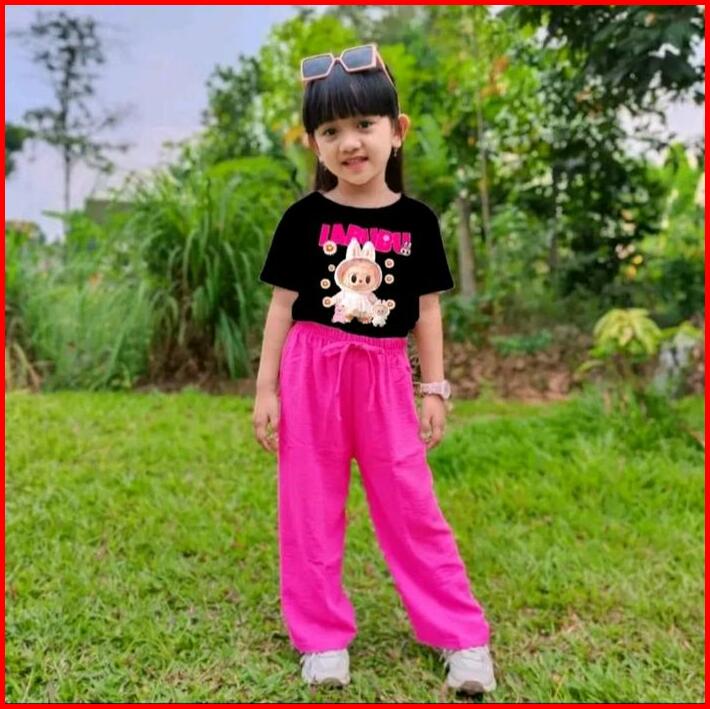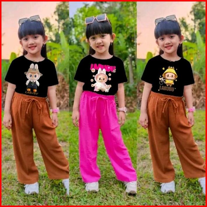 Baju Setelan Labubu Fashion Anak Setelan Anak Perempuan Usia 3-12 Tahun Pakaian Anak Perempuan