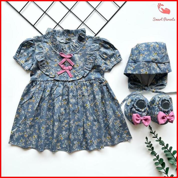 Dress Anak Bayi Perempuan Newborn Usia 0-12 Bulan Lucu Pakaian Baby Girl Motif Bunga Pergi Kondangan Jalan Mall Gemi Dre