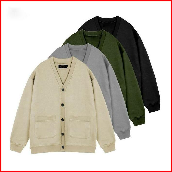 Cardigan Cowok Ootd Cowok Sweater Cardigan Basic Panjang Tebal Knitwear Pria Cardigan Sad Kain Fleece Regular Kerah Crew