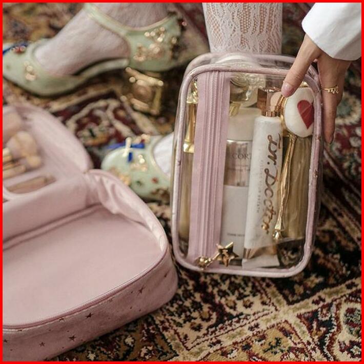 Pouch Make Up 2 In 1 Kain Beludru Make Up Organizer Tas Kosmetik Wanita Polos Tempat Alat Make Up Dan Cermin Kotak Make