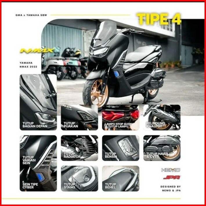 TAMENG DEPAN, WINGLET, COVER STANG, COVER DASHBOARD, COVER SEIN, FULL BODI HALUS, COVER STEP, COVER CVT+HAWA, COVER RADIATOR, TAMENG KNALPOT, TUTUP TANGKI, PIJAKAN BAWAH, BAWAH LMPU STOP, COVER LMPU STOP, COVER HAWA, COVER CVT, COVER BEHEL, DUCKTAIL CARBON, WDSLD SIRIP HTM, WDSLD SIRP BENG, RDTR ARM SILVER, RDATR ARM HITAM, FILTER UMA RCNG, TTP HAWA BENING, WNDSD SIRIP SMK, KNPT TZM NON SS, KNPT TZM SS PRO