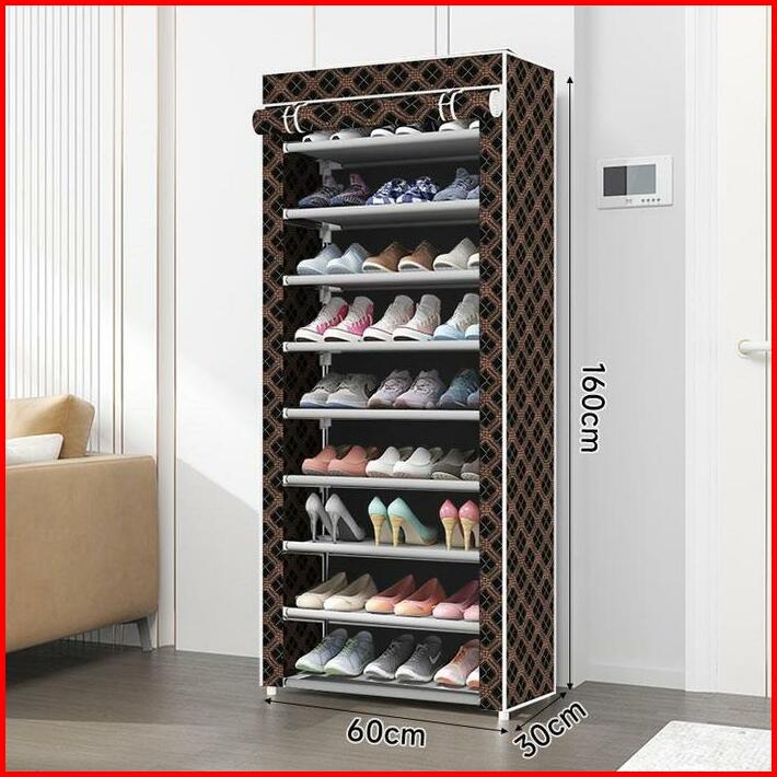 Beli Lokal Rak Sepatu 9 Tingkat Penyimpanan Sepatu Portable Rak Susun Serbaguna Resleting Rak Tempat Menyimpan Sepatu Ra
