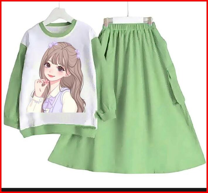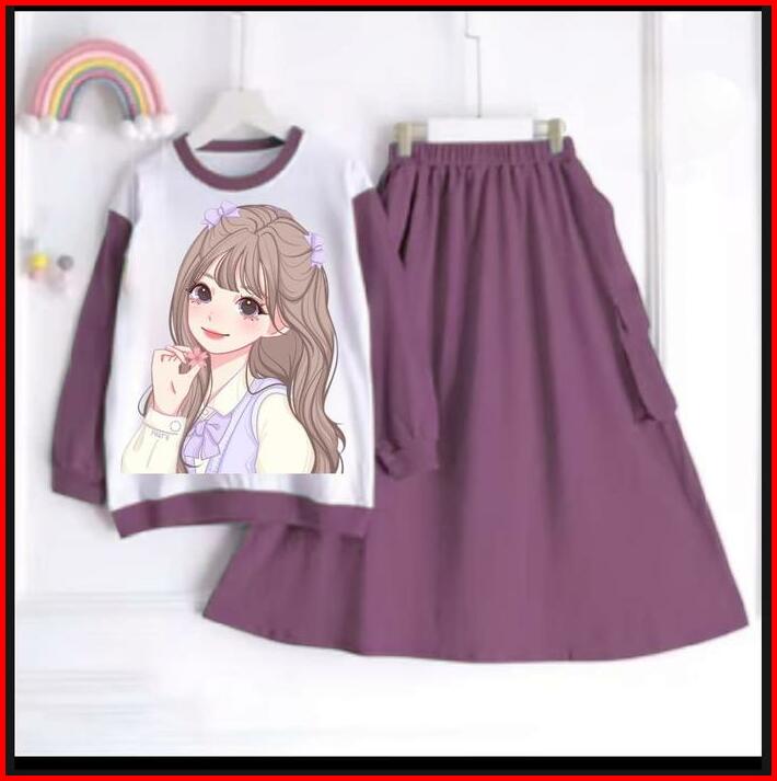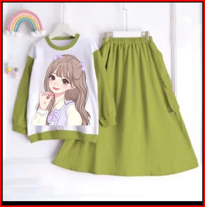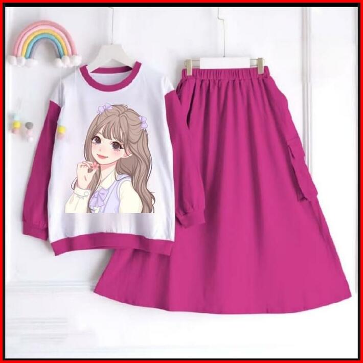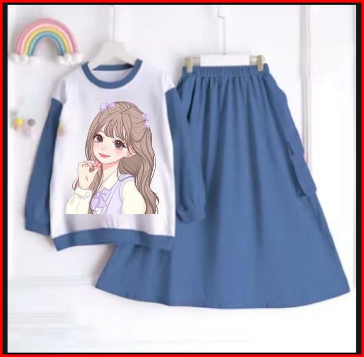 Setelan Rok Anak Perempuan Gadis Cantik Bahan Cringke Untuk Usia 3-12 Tahun