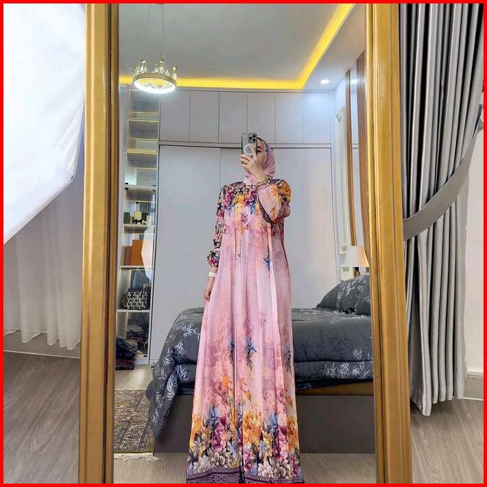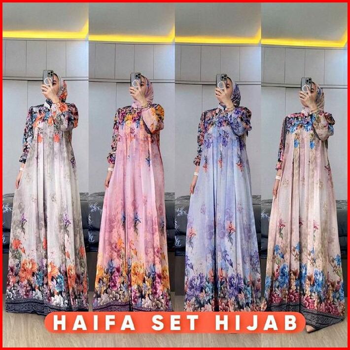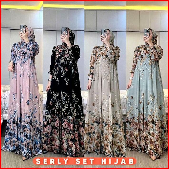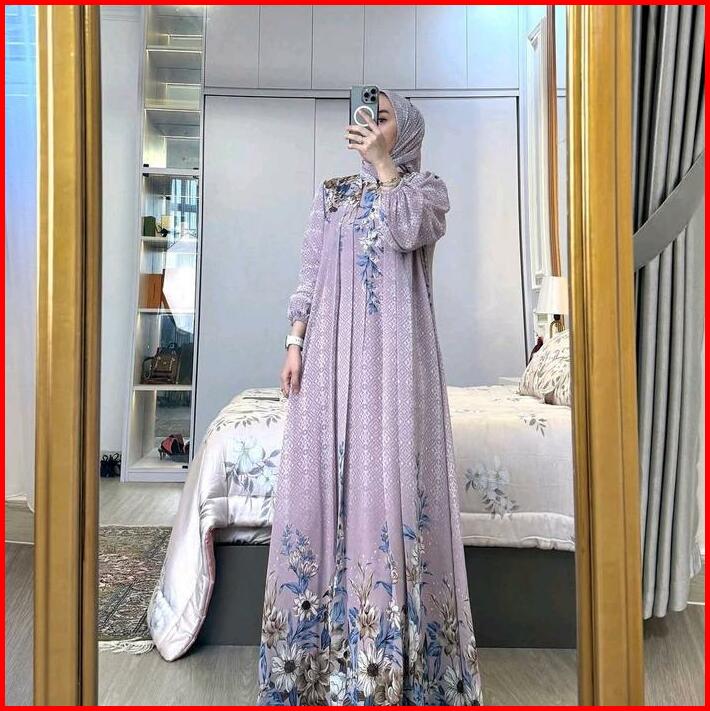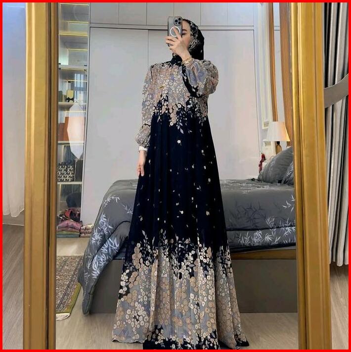 Carissa Set Hijab Gamis Rayon Motif Terbaru Dress Muslim Lebaran Wanita Syari Remaja Dewasa Panjang Nyaman Kain